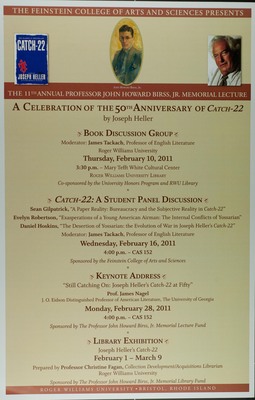 Magel, James, "Still Catching On: Jospeh Heller's "Catch 22" at Fifty" (2011). John Howard Birss, Jr. Memorial Program. 11.
