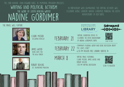 Boyers, Robert; Messud, Claire; and Wood, James, "Writing and Political Activism: The Work of South African Writer Nadine Gordimer" (2023). John Howard Birss, Jr. Memorial Program. 23.
